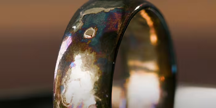 與銀的銀白色形成強烈對比,產生粗獷、古樸、仿舊的視覺效果,並增加飾品的硬度。