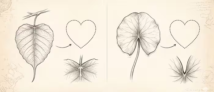 在古印度等文明中,考古學家發現了心形的菩提葉 Pipal leaf (無花果科)與睡蓮葉墜飾。