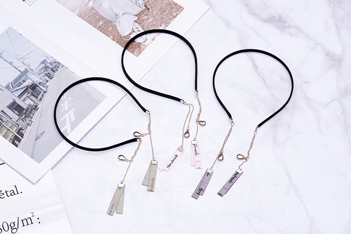 字母緞帶水滴×假耳環髮箍×共三色-第1張