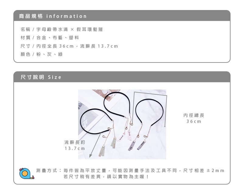 字母緞帶水滴×假耳環髮箍×共三色-第5張