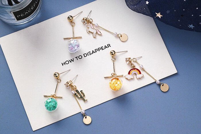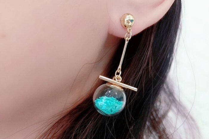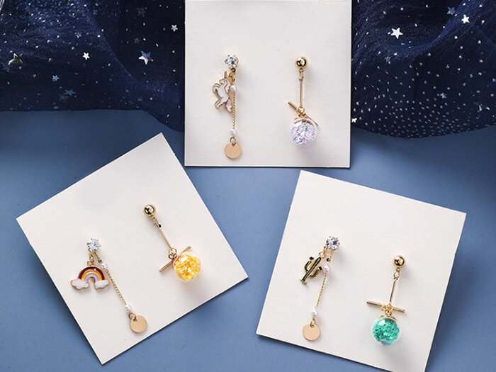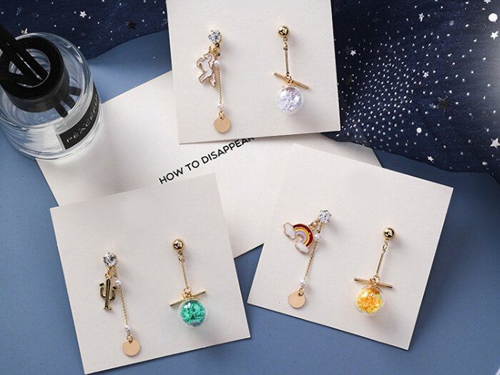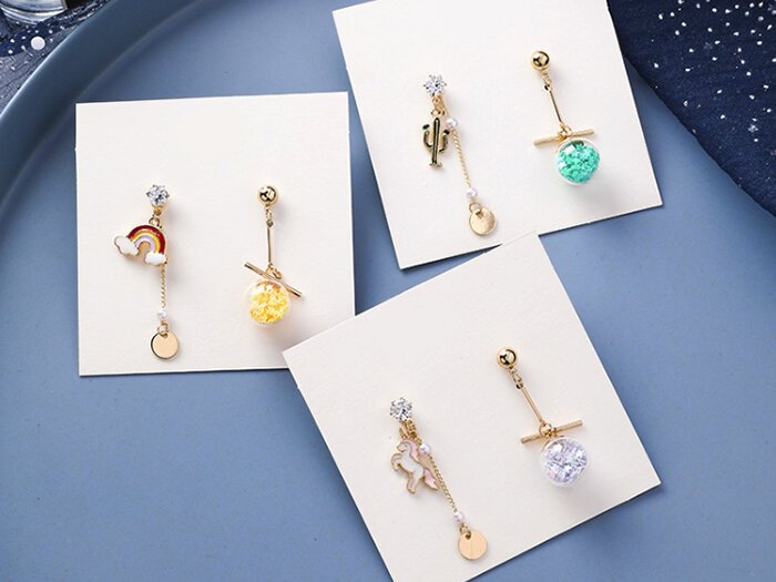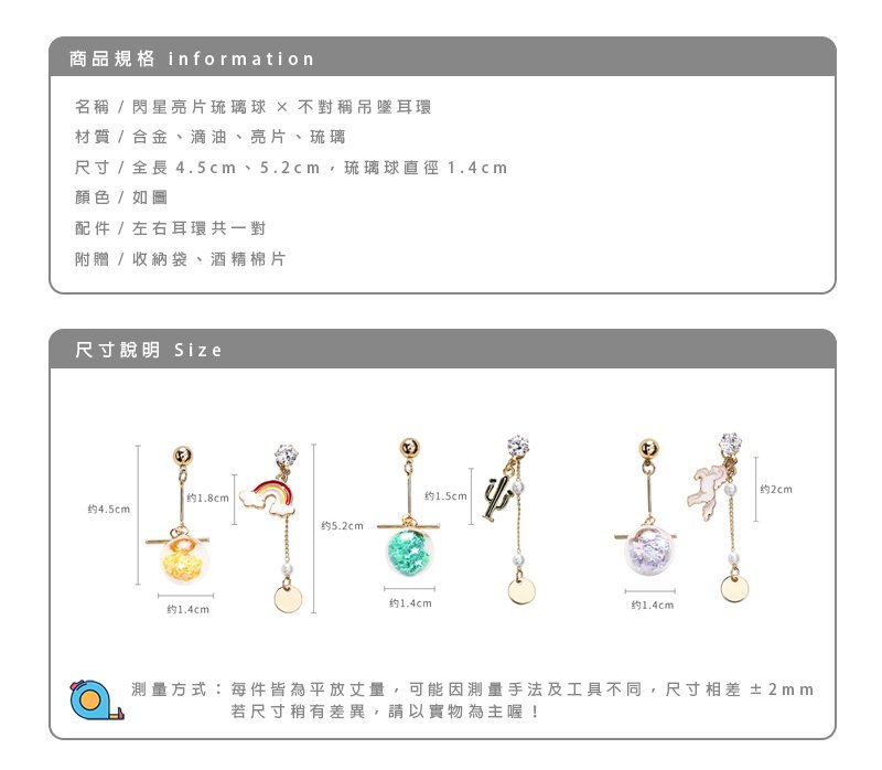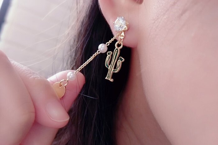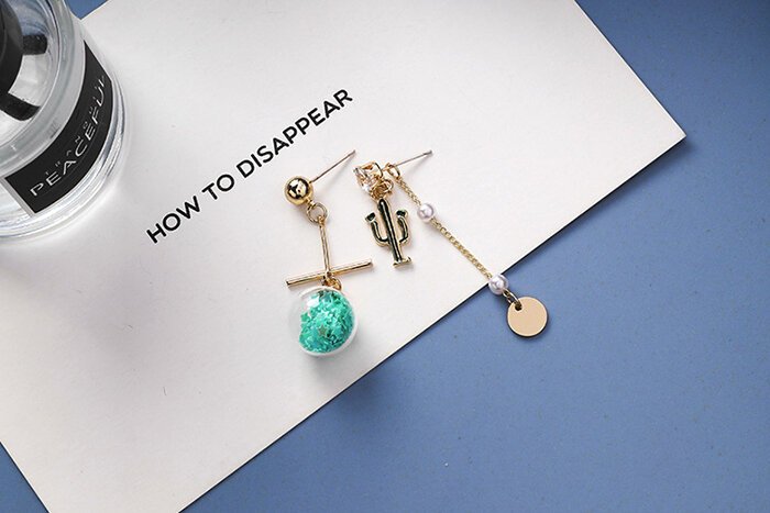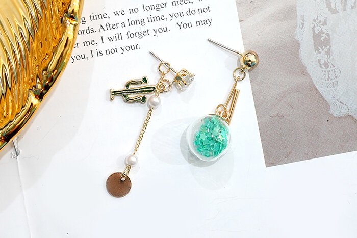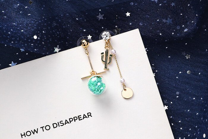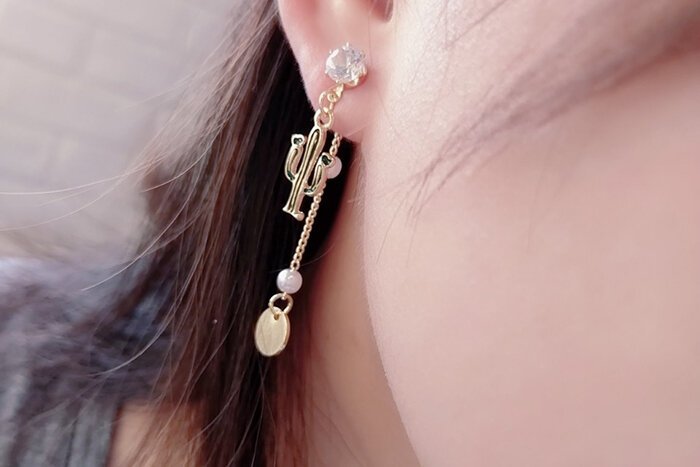- 仙人掌閃星亮片×不對稱吊墜耳環