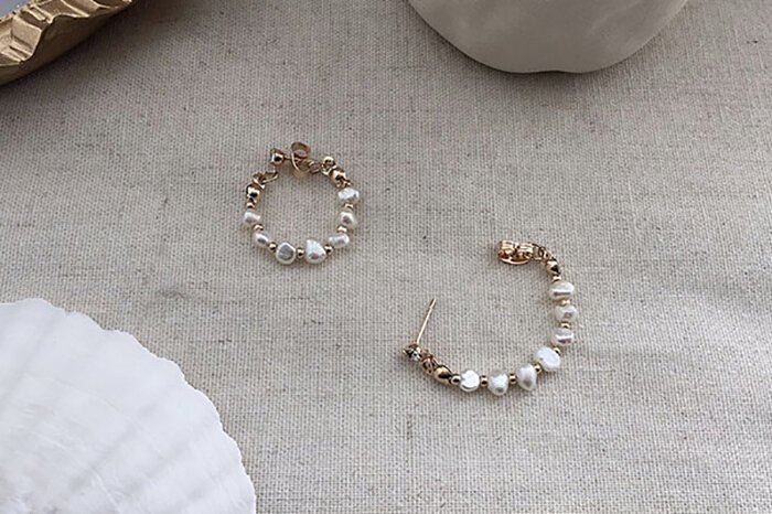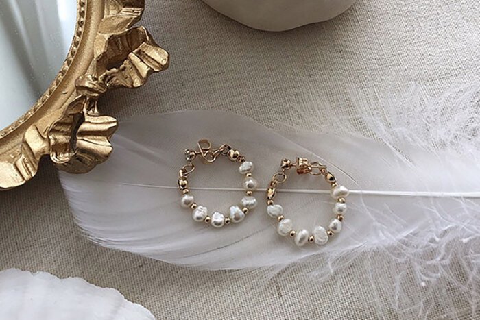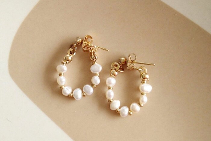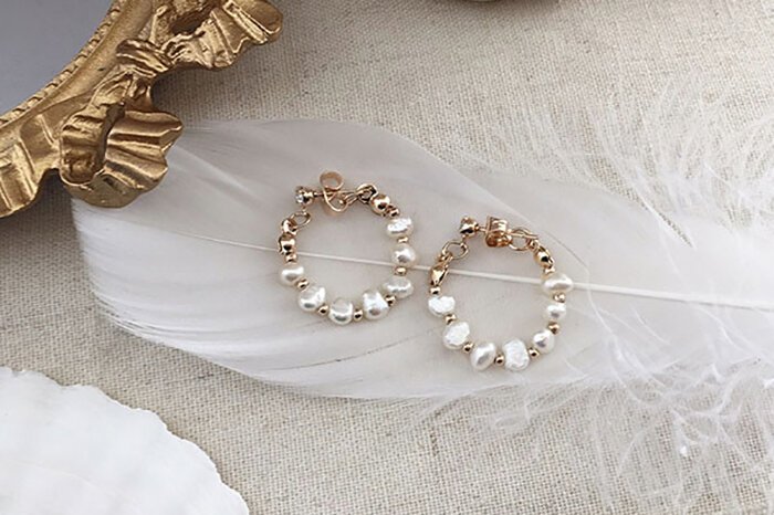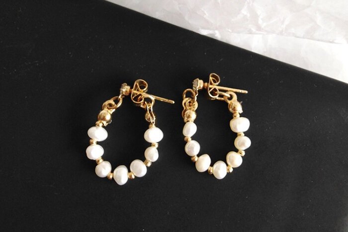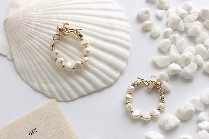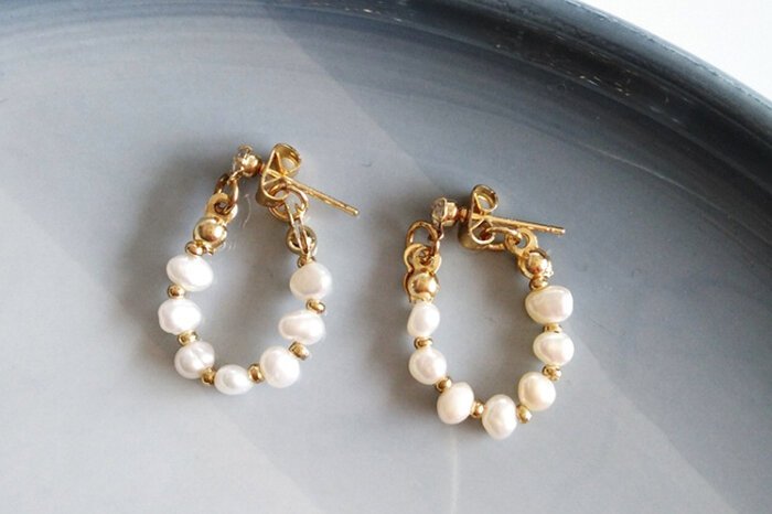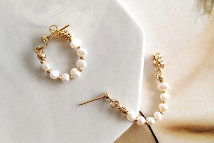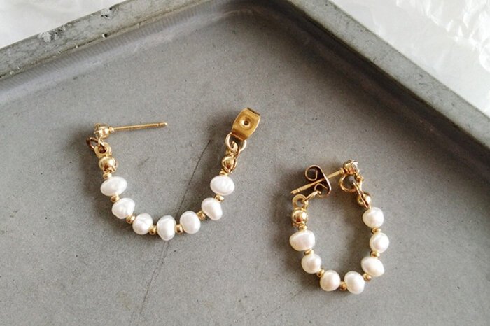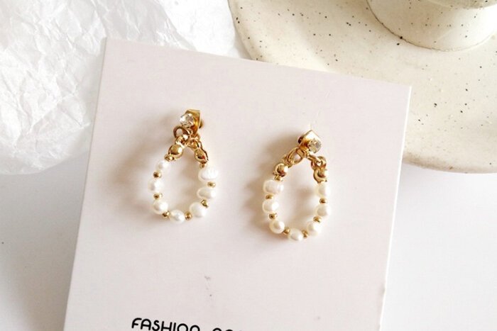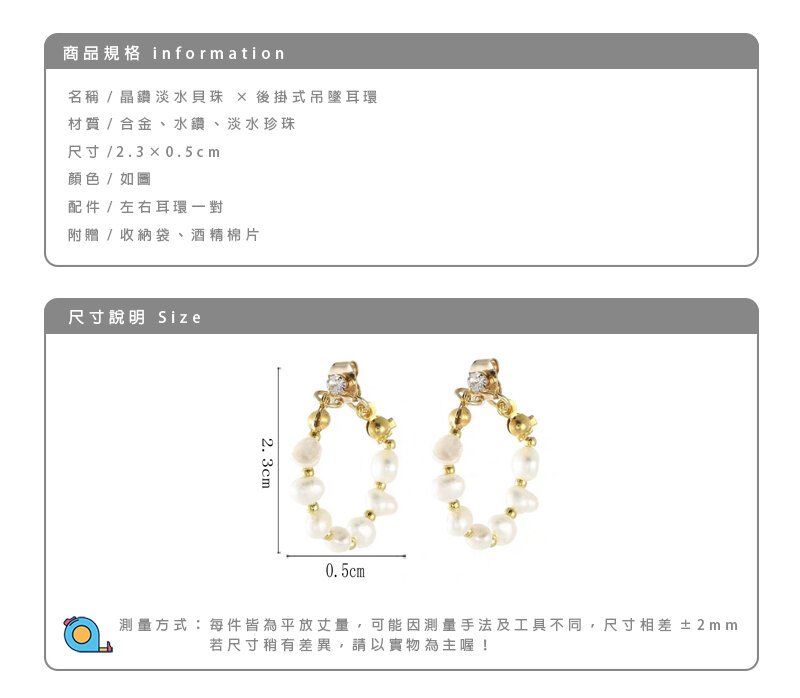 - 晶鑽淡水貝珠 ×後掛式吊墜耳環