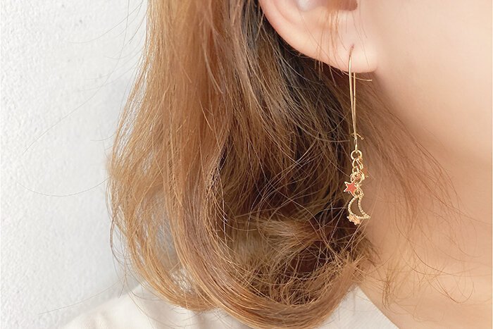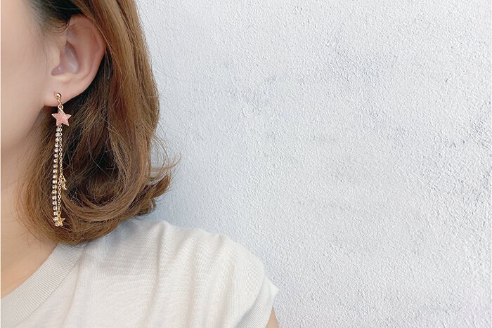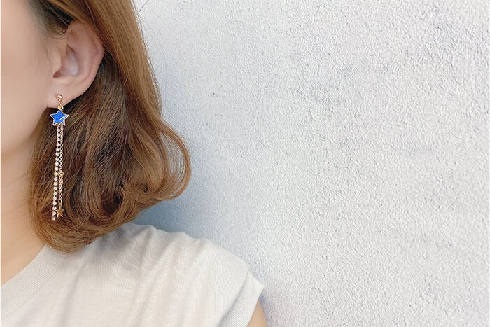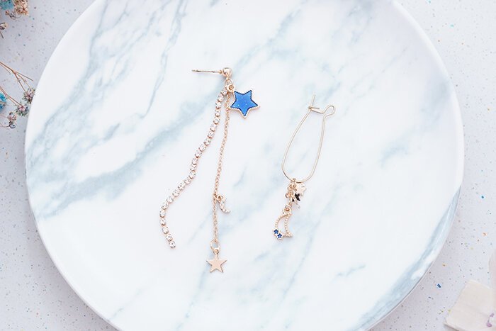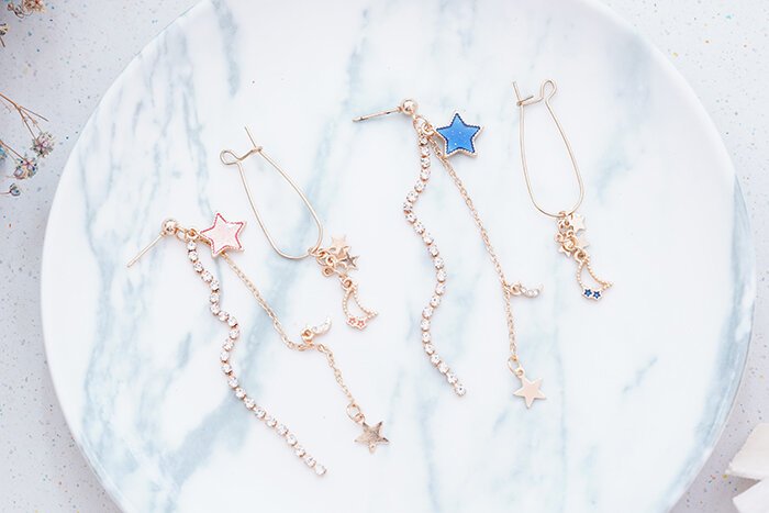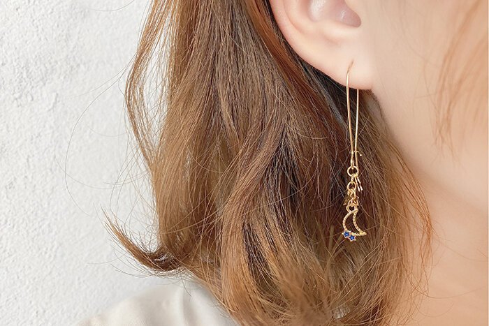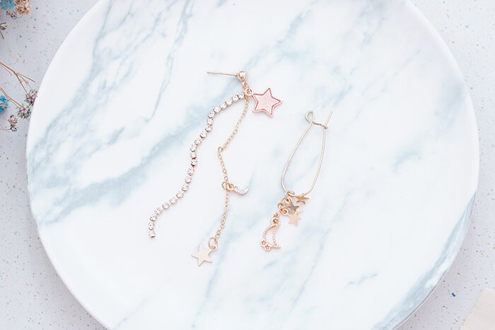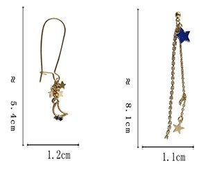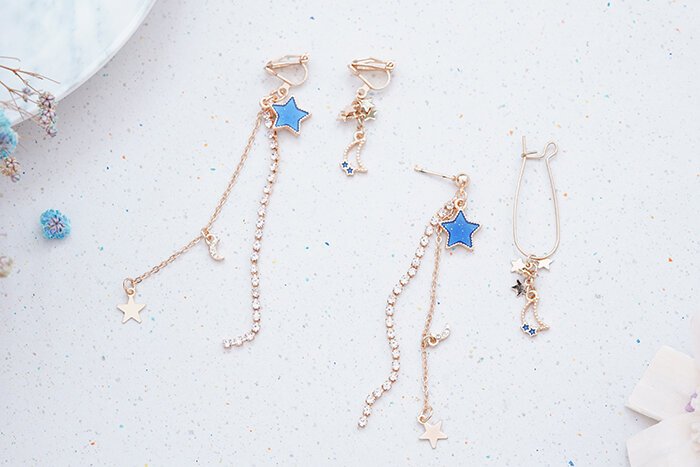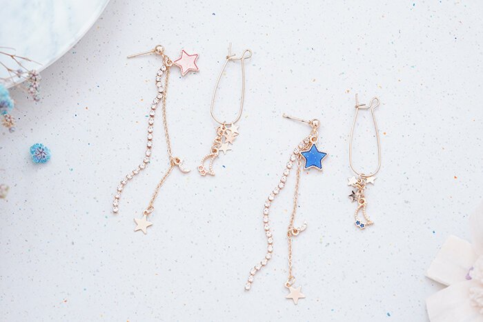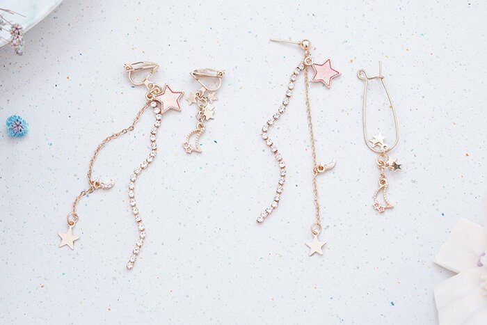 ▶名稱/長條晶鑽星星月亮×不對稱吊墜耳環