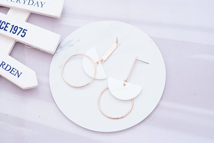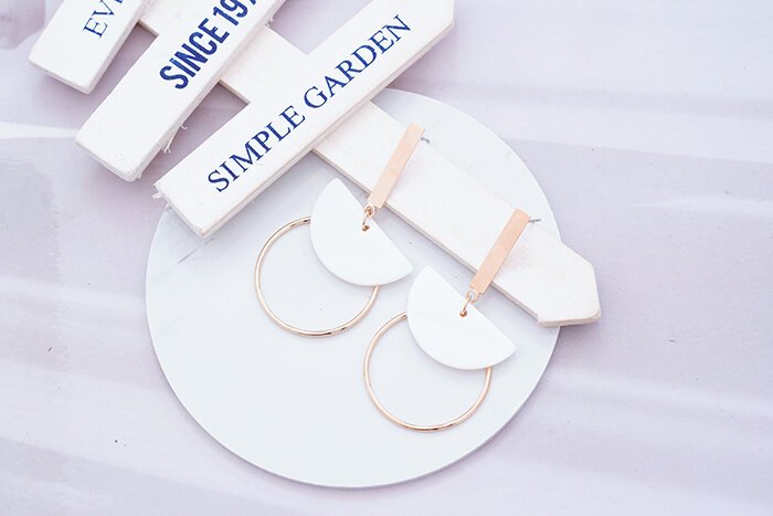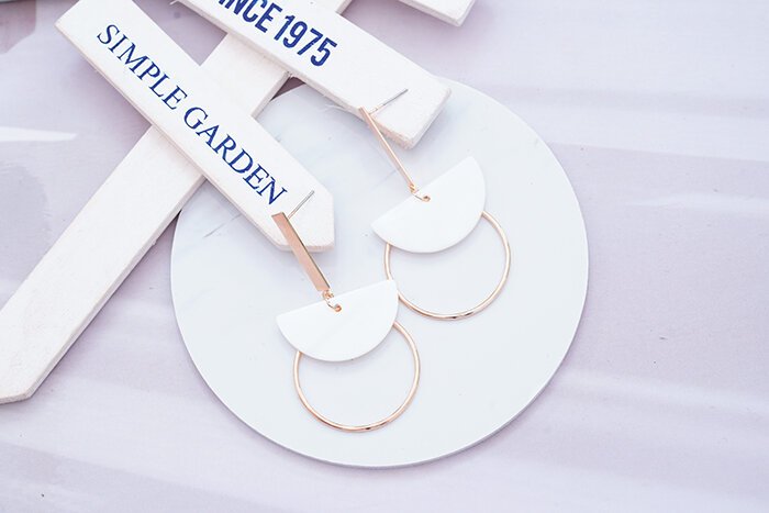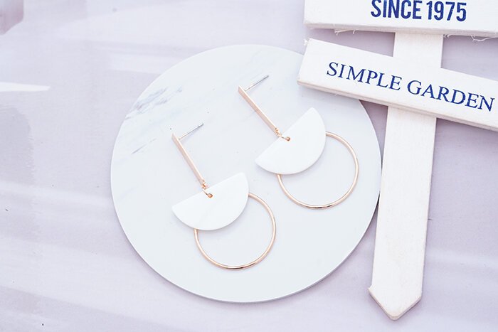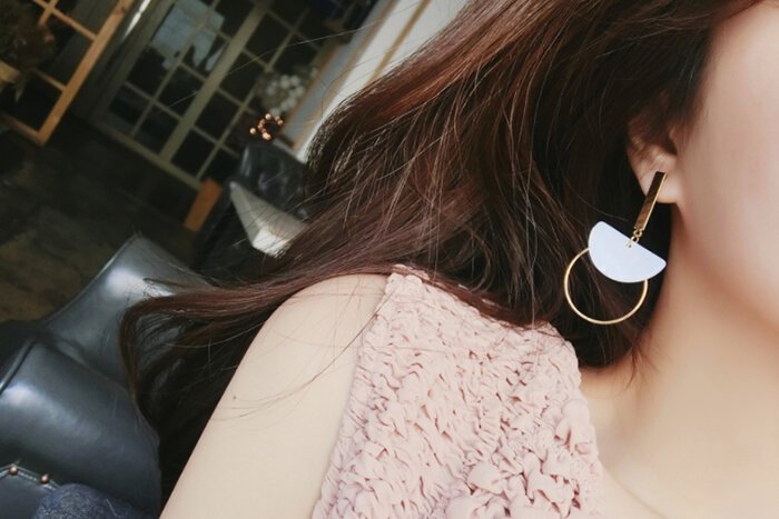 ▶名稱/半圓貝殼長桿圓環×吊墜耳環