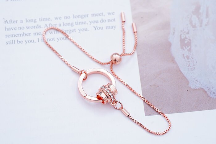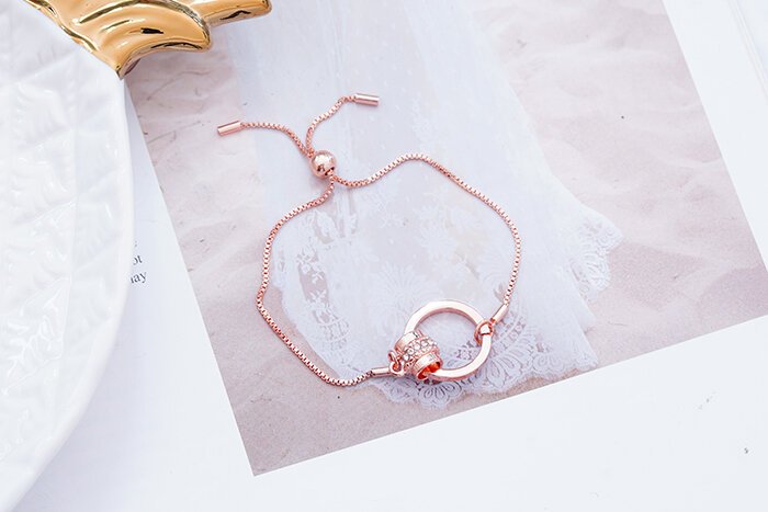 ▶名稱/玫瑰金晶柱扣圓環×手鍊