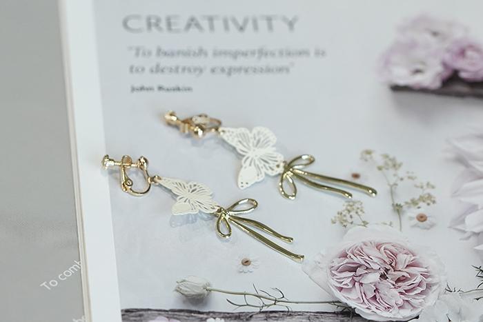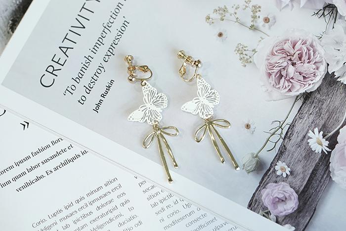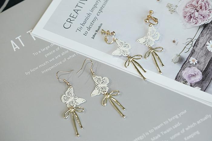 ▶名稱/優雅白蝴蝶領結×螺旋耳夾