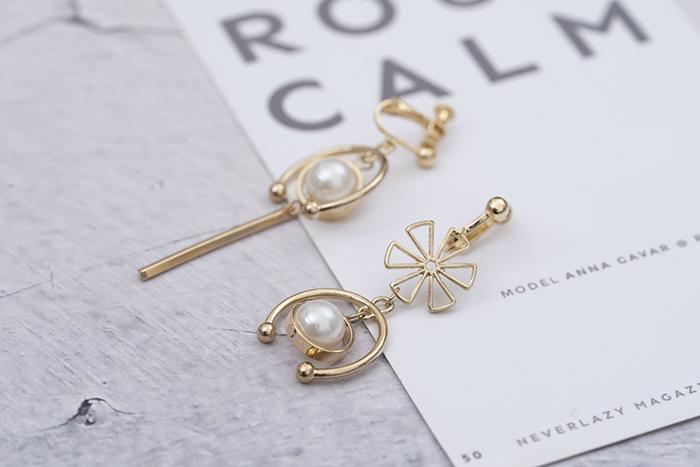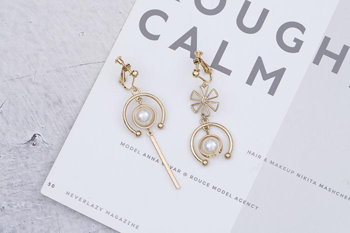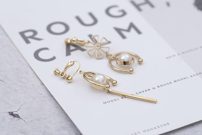 大U環小花珍珠×不對稱螺旋耳夾-第5張