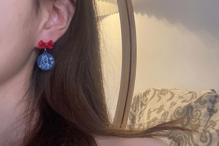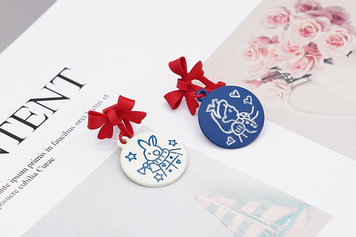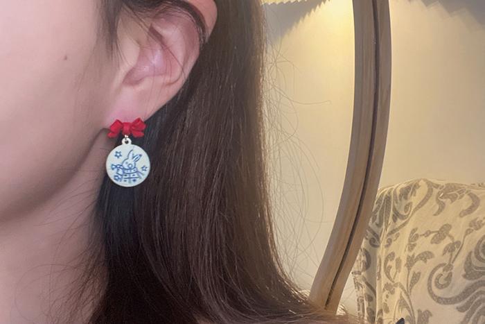 ▶名稱/紅領結愛麗絲小兔×不對稱三角耳夾