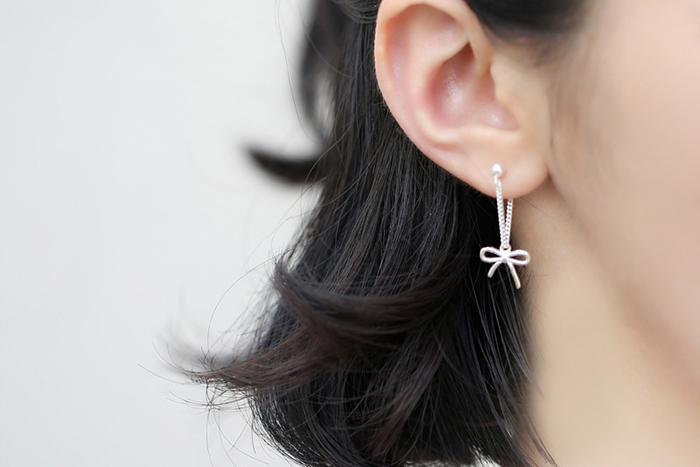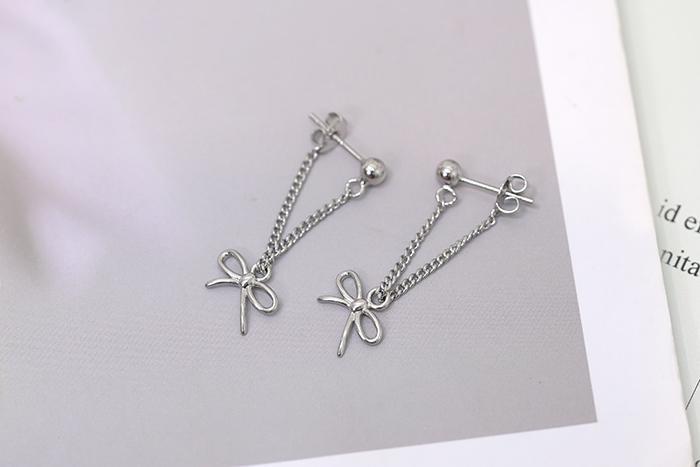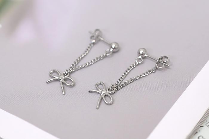 925銀針×蝴蝶結垂鍊×後掛式耳環
