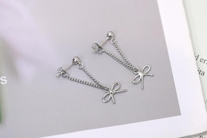 925銀針×蝴蝶結垂鍊×後掛式耳環-第4張