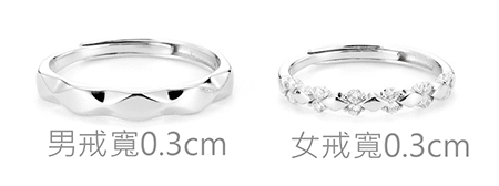 ▶尺寸/男戒寬0.3-內徑1.7cm可調、女戒寬0.3cm-內徑1.6cm可調