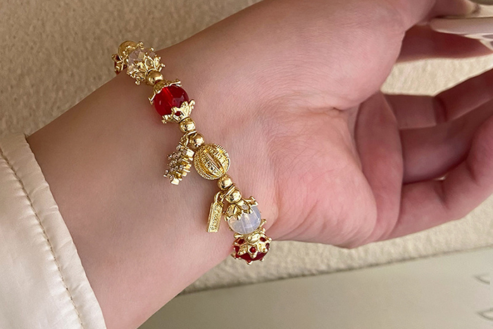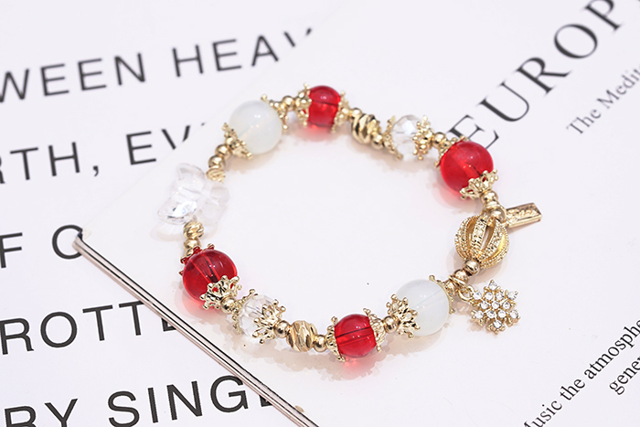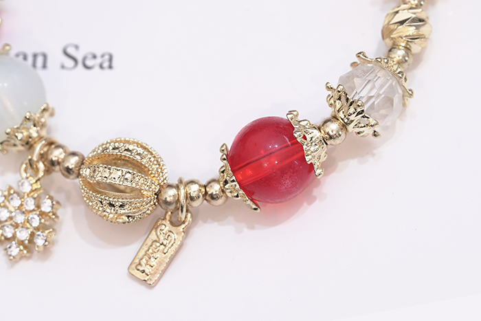 ▶名稱/聖誕雪花紅金琉璃×固定式串珠手鍊
