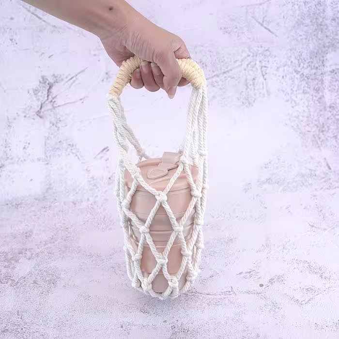 ▶名稱/撞色鏤空網編×飲料水瓶提袋