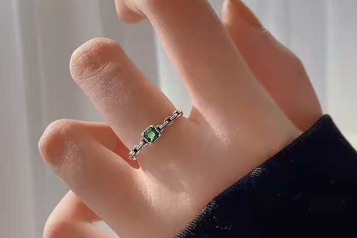925銀飾×方型綠鑽鍊條×開口戒指-第6張