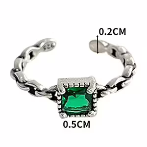 925銀飾×方型綠鑽鍊條×開口戒指-第1張
