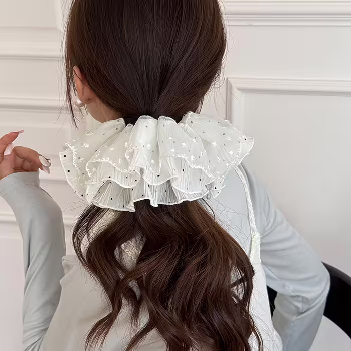 ▶名稱/白紗點點蕾絲裙擺×大腸髮束