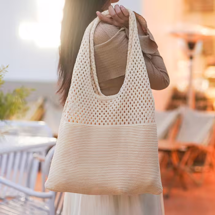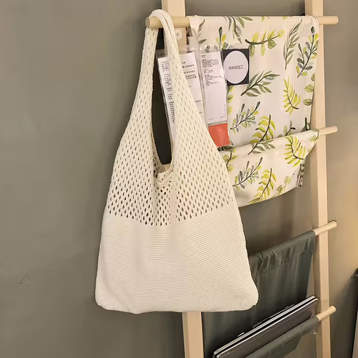 ▶名稱/素色拼接鏤空針織×肩背包