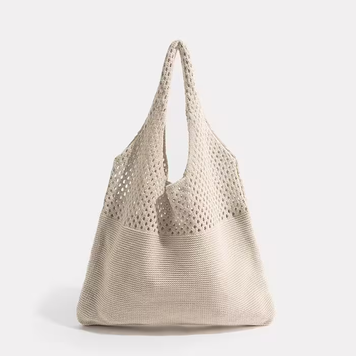 素色拼接鏤空針織×肩背包×米白-第1張