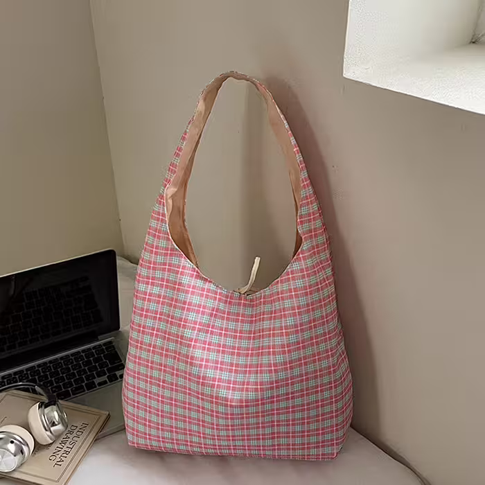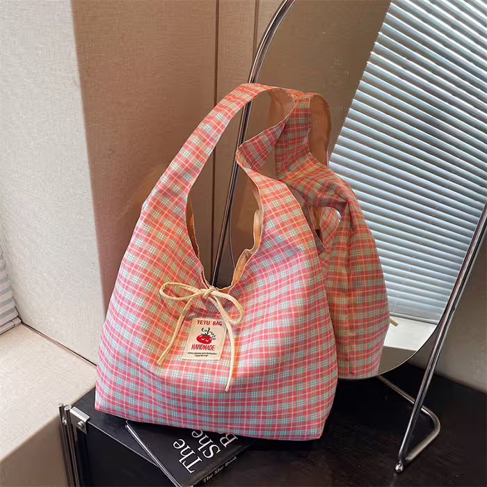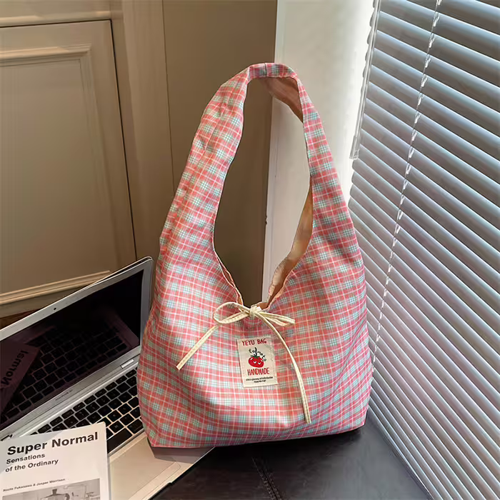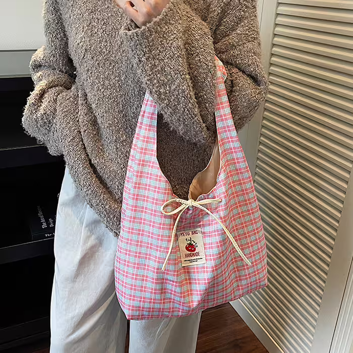 格紋蝴蝶結小蕃茄×肩背包×粉紅