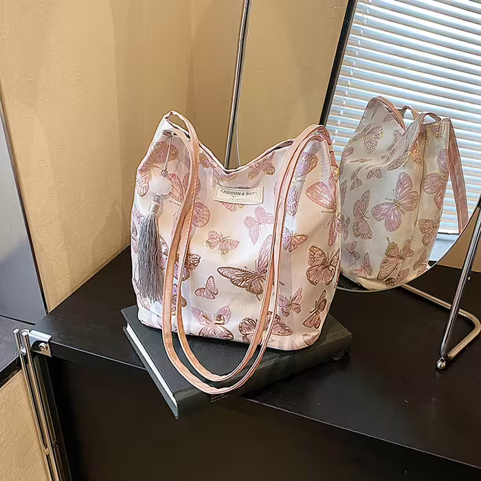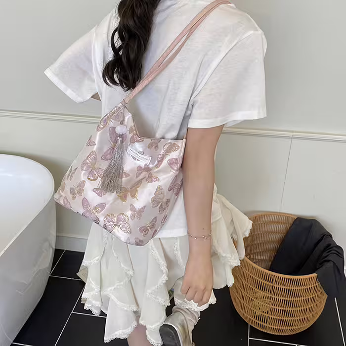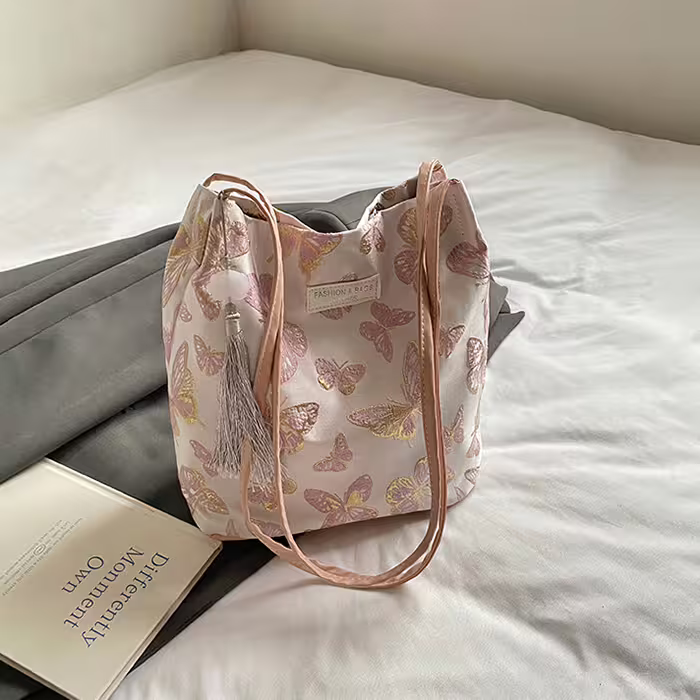 東方蝴蝶刺繡×肩背包×粉紅-第1張