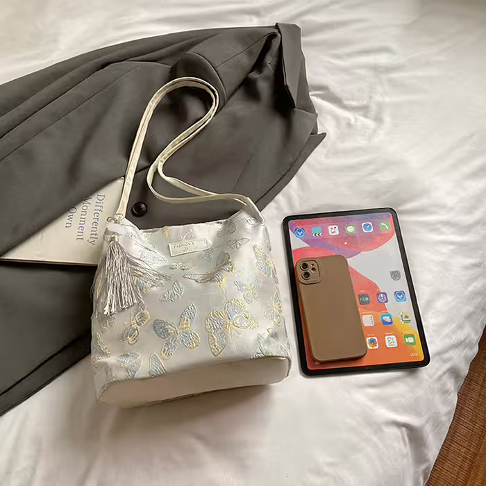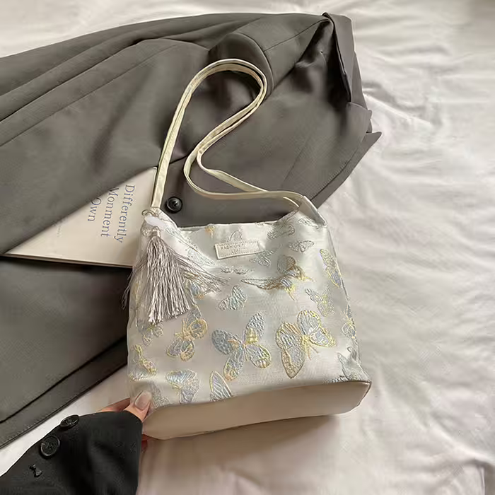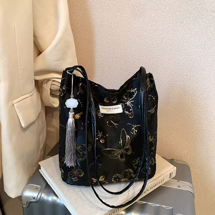 東方蝴蝶刺繡×肩背包×黑色-第1張