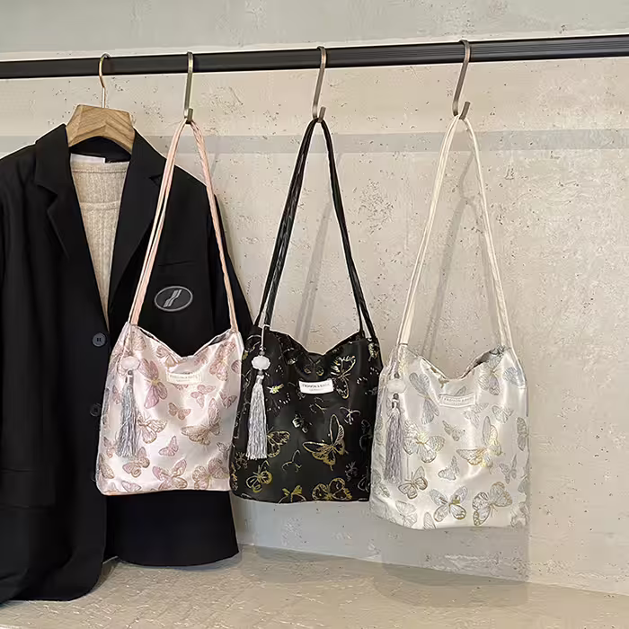 東方蝴蝶刺繡×肩背包×黑色-第5張