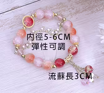 ▶名稱/橘紅流蘇碎珍珠×固定式串珠手鍊