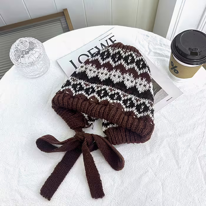 ▶名稱/費爾島毛線格紋×毛帽×棕咖