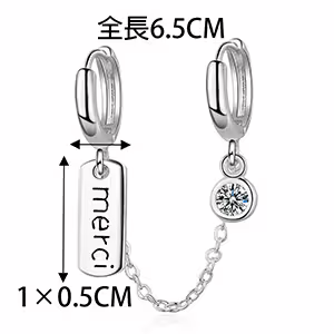 ▶名稱/字母吊牌單鑽×單邊相連耳釦