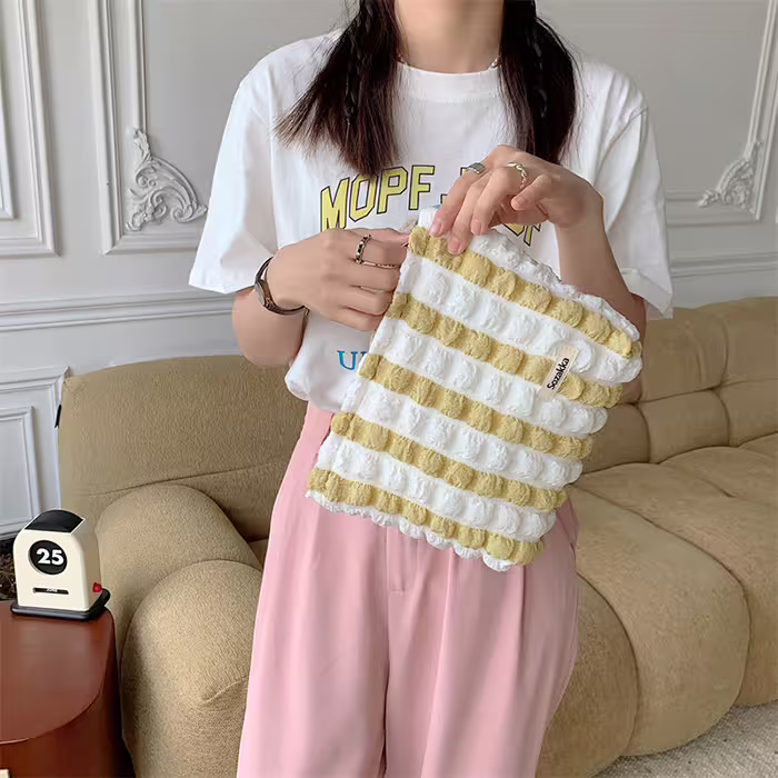 ▶名稱/泡芙雲朵包×化妝包×黃條紋