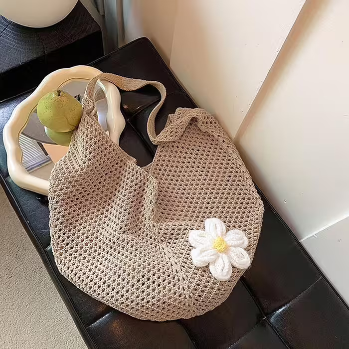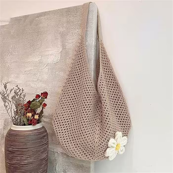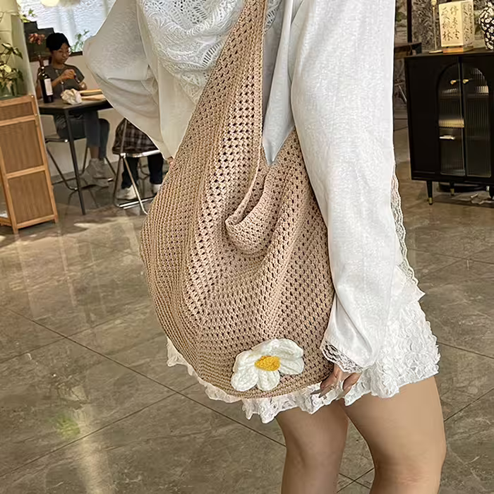 慵懶小花針織×肩背包×卡其-第1張