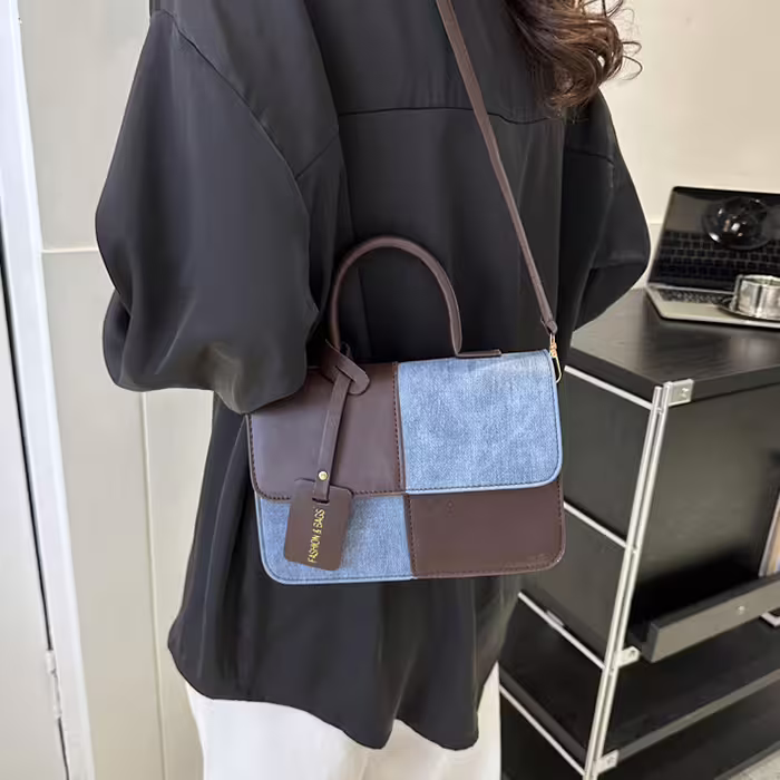 ▶名稱/牛仔單寧皮革撞色×斜背包